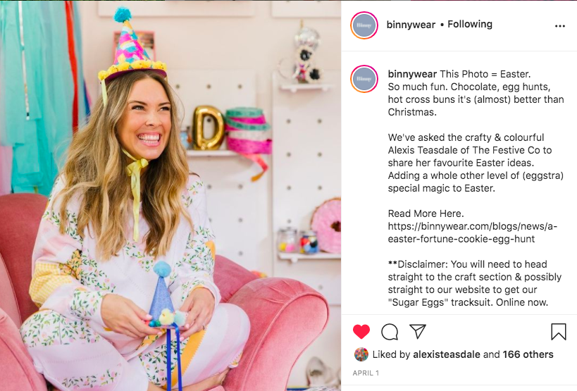 Australian fashion label Binny featured an interview with Alexis online as well as two mini photo shoots around Easter 2021 and school holidays. She shared her Easter styling and craft tips as well as fun activities to do with the kids.